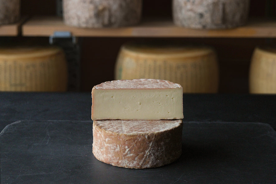 Tommette Elutcha is a raw sheep’s milk cheese made by the Dombre family who had already established their name through the renaissance of Perail. Situated at Les Cabasses, Aveyron, Midi Pyrenees, Jean Francois & Rosine Dombre were delighted when their children Elise, Lucie and Charles joined the family business. Elutcha is named after the 3 of them. The cheese is made in a copper vat to a Tomme recipe (heated to 32C, cut, drained and moulded) before it is washed in a brine solution that gives its distinctive orange brown colour. These cheeses vary from delicious, light, sweet, fresh coconut flavours to richer, succulent, more umami meatiness. Either way, the complexity of their Lacaune sheeps’ milk shines through and they taste lovely.